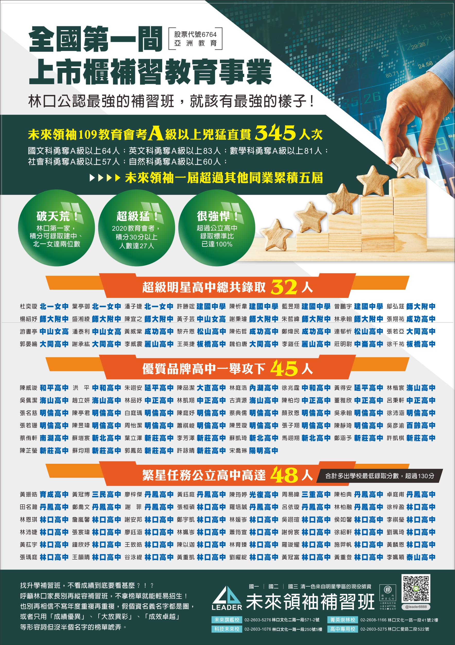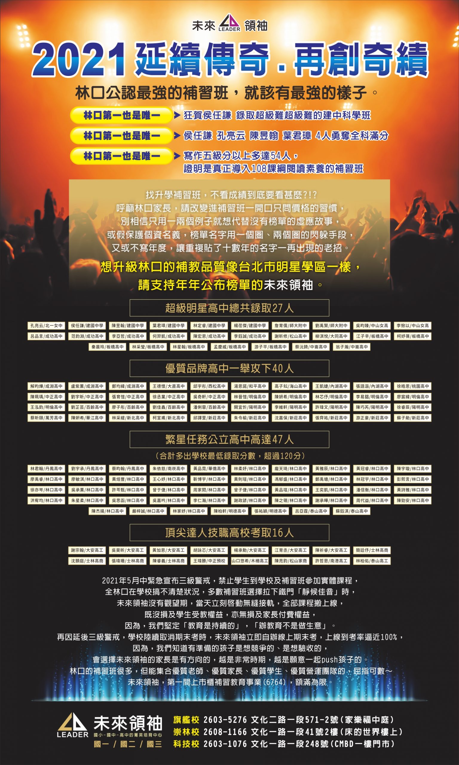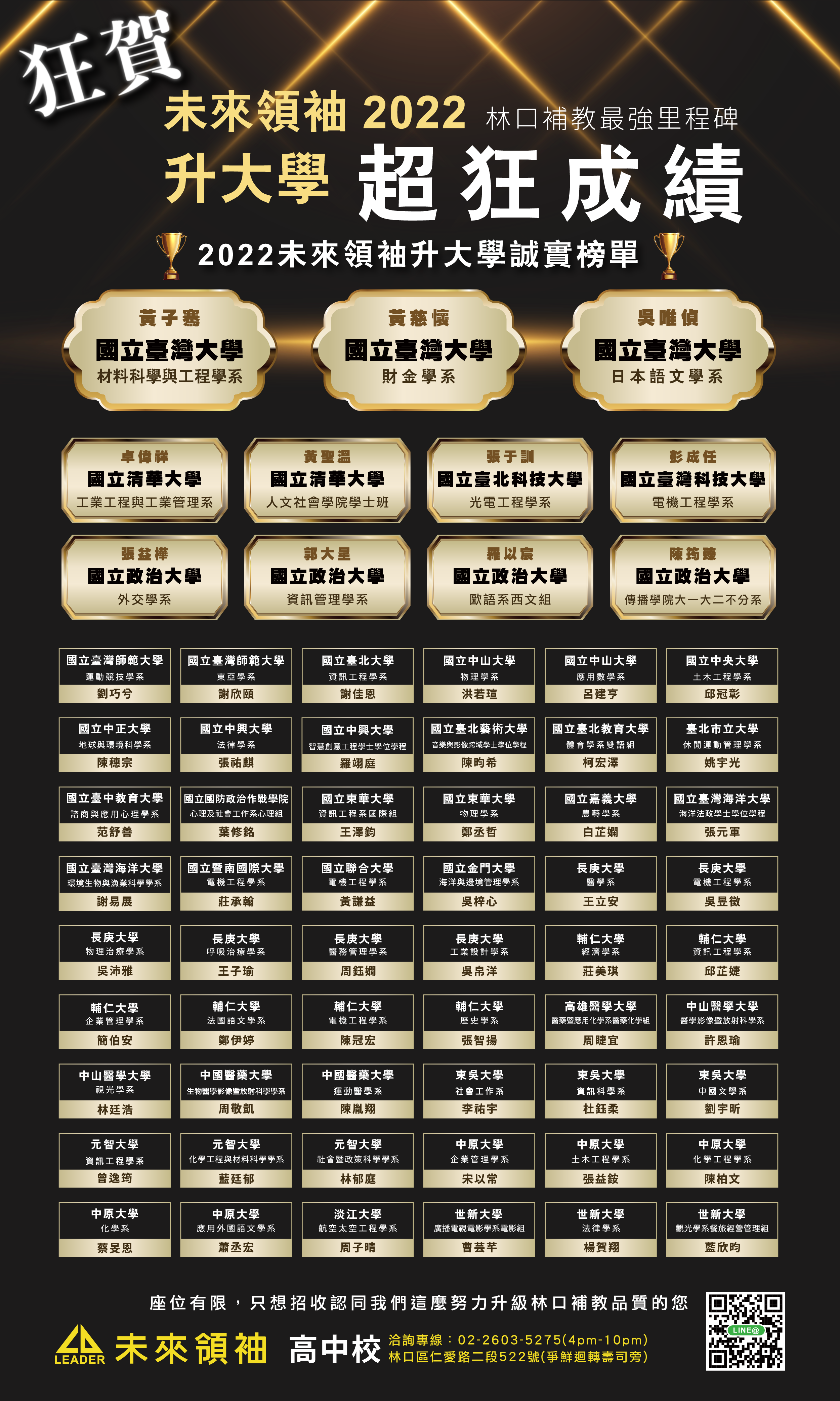 2020-11-16 109教育會考榜單 作者: 作者: morcept 分類: 英雄榜單 分類: 英雄榜單 下一篇文章 留班教育訓練營系列課程3 上一篇文章 逾六成國一生照課本做實驗 新課綱探究實作挑戰多 相關文章 109教育會考 破表新紀錄 2022升大學金榜 未來領袖學子王右竹 超高分錄取 陽明醫科 金榜戰報-108年國三各校校內前三